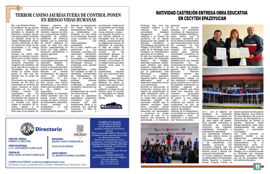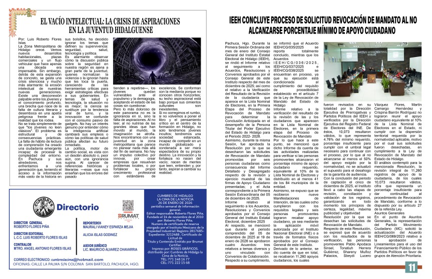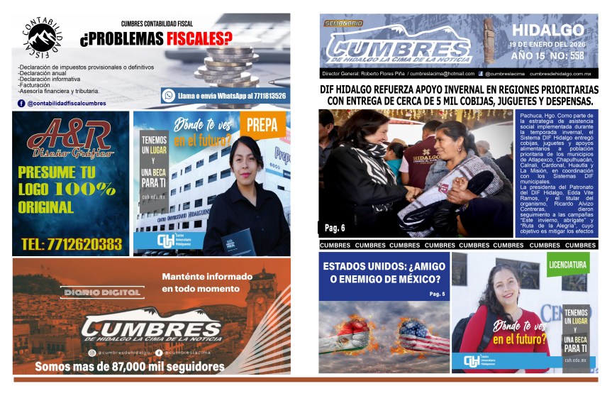 Somos un diario digital comprometido con brindar a nuestros lectores la información más relevante del estado de Hidalgo. Nuestra misión es proporcionar una cobertura imparcial y veraz de los acontecimientos locales, nacionales e internacionales que impactan a nuestra comunidad.