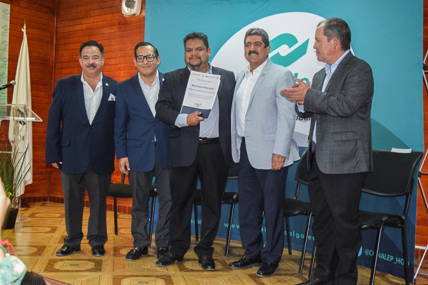 Ante la presencia del director general del sistema CONALEP nacional, Manuel de Jesús Espino Barrientos, los estudiantes Mario Rivero Bosques, Graciela Hernández Almazán, Brandon Ordaz Sánchez, Rodrigo Escobar León, Kevin Castro Vargas, Oscar Adrián Durán y Marco Antonio Cerón recibieron un reconocimiento de manos del subsecretario de Educación Media Superior y Superior, Daniel Fragoso Torres, en representación del secretario de Educación Pública de Hidalgo, Natividad Castrejón Valdez.