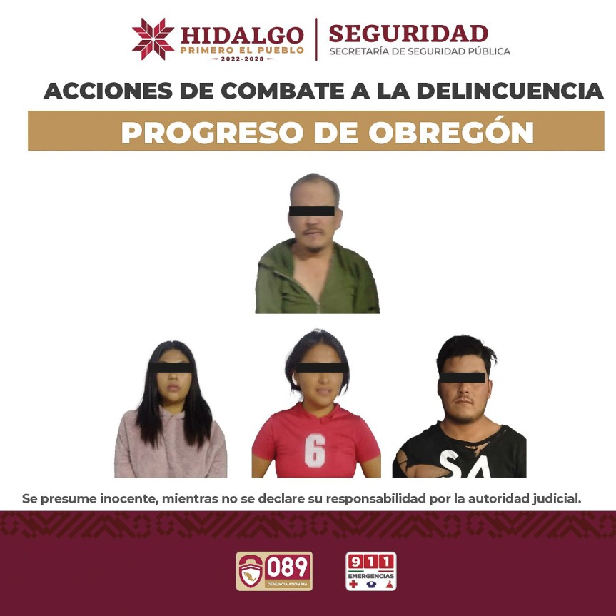 Por estos hechos, dos mujeres identificadas como M. F. O. C. y L. M. G., de 18 y 22 años respectivamente, así como dos hombres identificados como B. D. T. A. y M. L. G., de 24 y 39 años, quedaron a disposición del Ministerio Público para las investigaciones.