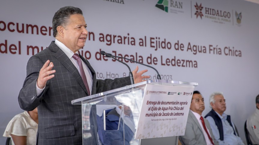 “¿Cuántas puertas se tuvieron que tocar?, ¿cuántas vidas se perdieron en esta búsqueda de justicia? Hoy decimos ¡ya basta!, es momento de garantizar la atención que ustedes se merecen”, enfatizó el gobernador de Hidalgo, Julio Menchaca Salazar, durante la entrega de documentación agraria al ejido de Agua Fría Chica, del municipio de Jacala.