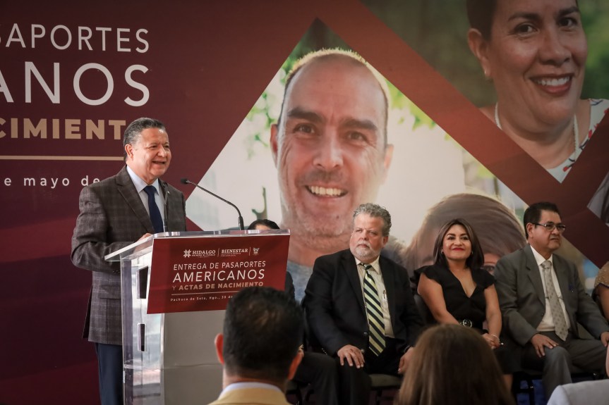 En un acto de justicia social, el gobernador de Hidalgo, Julio Menchaca Salazar, encabezó la entrega de 51 pasaportes americanos y 20 actas de nacimiento a hijos de paisanos nacidos en Estados Unidos de América, documentos que fueron gestionados a través del programa “Ya soy hidalguense”.