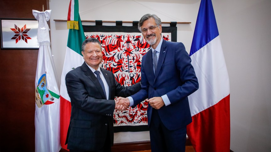 El gobernador del estado de Hidalgo, Julio Menchaca Salazar, y el excelentísimo señor Jean-Pierre Asvazadourian, embajador de Francia en México, sostuvieron una reunión con la finalidad de generar estrategias de vinculación internacional para el intercambio académico, tecnológico y científico, así como la posibilidad de realizar inversiones económicas que permitan potencializar a la entidad.