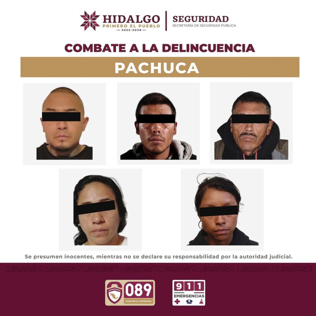 Con ello se logró la detención de cinco personas presuntamente relacionadas con el delito de narcomenudeo: dos mujeres identificadas como L. P. P. y M. T. H., así como tres hombres identificados como M. A. M. H., J. A. O. V. y B. A. H. P., alias “El Grillo”.