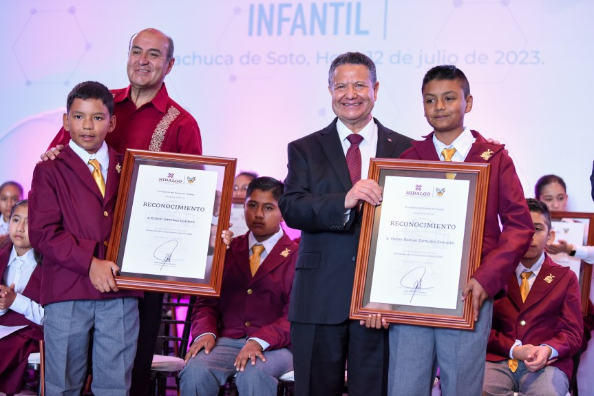 El gobernador de Hidalgo, Julio Menchaca Salazar llevó a cabo un reconocimiento al esfuerzo, dedicación y talento de niños y niñas de diferentes rincones del estado que obtuvieron resultados sobresalientes en la Olimpiada del Conocimiento Infantil 2023.