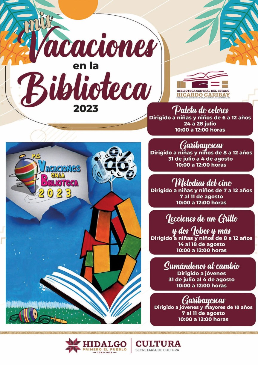 La Secretaría de Cultura de Hidalgo, dirigida por Tania Meza Escorza, dio a conocer que, en coordinación con el Consejo Estatal para la Cultura y las Artes de Hidalgo (Cecultah), Centro de las Artes, Red Estatal de Museos, Red Estatal de Bibliotecas e instancias municipales serán impartidos 340 cursos de verano en todo el estado.