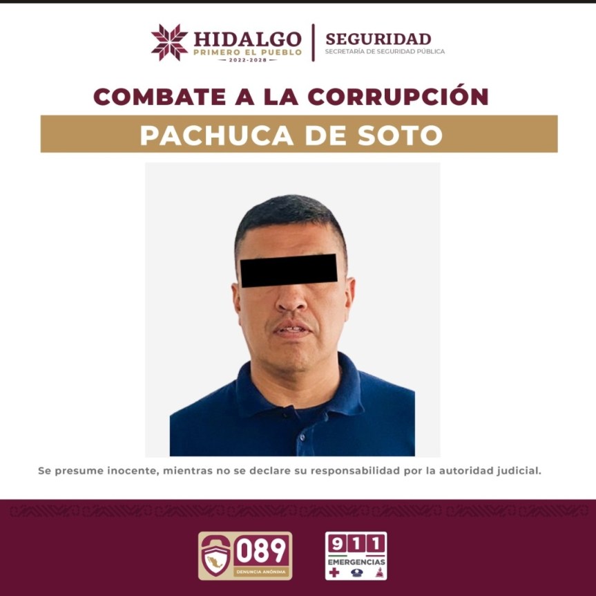 La Secretaría de Seguridad Pública de Hidalgo (SSPH) reitera el compromiso de no dejar impunes actos de corrupción o indisciplina de los agentes adscritos a la Policía Estatal, lo anterior, derivado de la detención y vinculación a proceso de E. I. S. B, quien se desempeñaba como elemento de esta corporación.