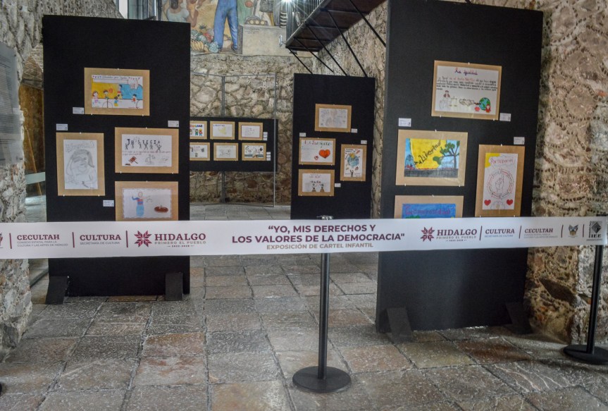 La muestra permanecerá en el Centro de las Artes de Hidalgo hasta el 31 de agosto y es resultado del concurso del instituto electoral “Viviendo los valores de la democracia”, donde participaron niñas y niños, de 10 a 13 años, con los temas de: libertad, participación, pluralismo, igualdad, respeto, justicia y tolerancia.