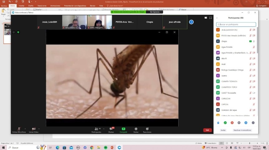 La Secretaría de Salud del estado de Hidalgo (SSH) impartió una capacitación virtual, sobre “Prevención de Enfermedades Diarreicas Agudas y Cólera”, así como acciones para la “Prevención del Dengue”, la cual estuvo dirigida a 84 personas encargadas de la Comisión Estatal del Agua y Alcantarillado (CEAA) y responsables de Cultura de Cuidado de Agua del interior de la entidad.