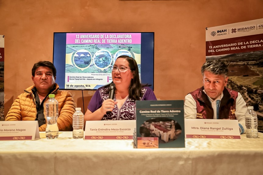 La Secretaría de Cultura, a cargo de Tania Meza Escorza, y el Centro Regional INAH Hidalgo, dirigido por Osvaldo José Sterpone, iniciaron una campaña de valoración patrimonial con la presentación de los libros Ramal del Camino Real Tecozautla-Huichapan y Camino Real de Tierra Adentro para conmemorar sus 13 años de declaratoria y la reciente de Zona de Monumentos Históricos del municipio de Huichapan.