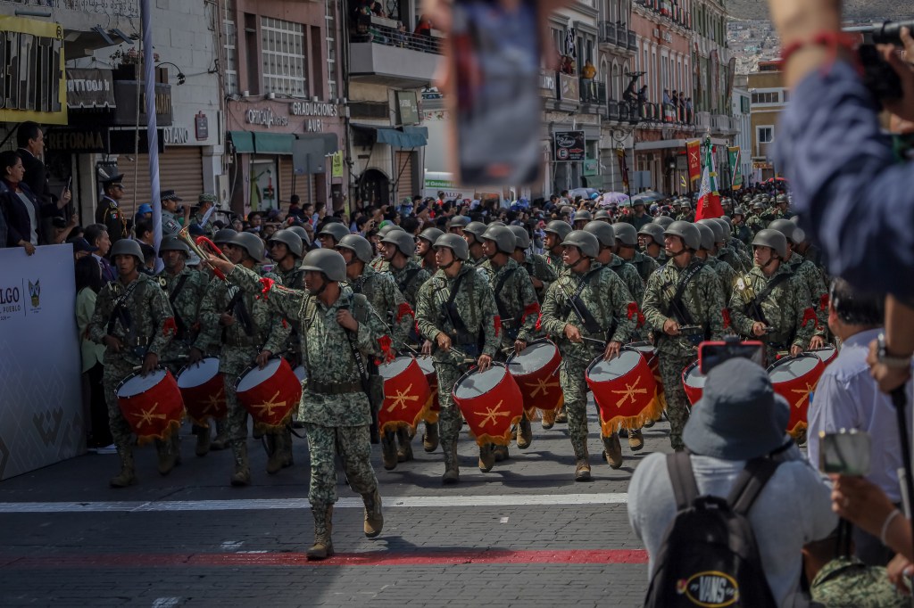 El mandatario estatal, en compañía de su esposa Edda Vite Ramos, presidenta del Patronato del Sistema DIF Hidalgo, aseguró: “Concluimos con saldo blanco esta temporada de festividades; hoy con este desfile y con la guardia de honor reforzamos nuestro compromiso con los ideales de mujeres y hombres que han luchado para garantizar la soberanía de nuestra nación”.