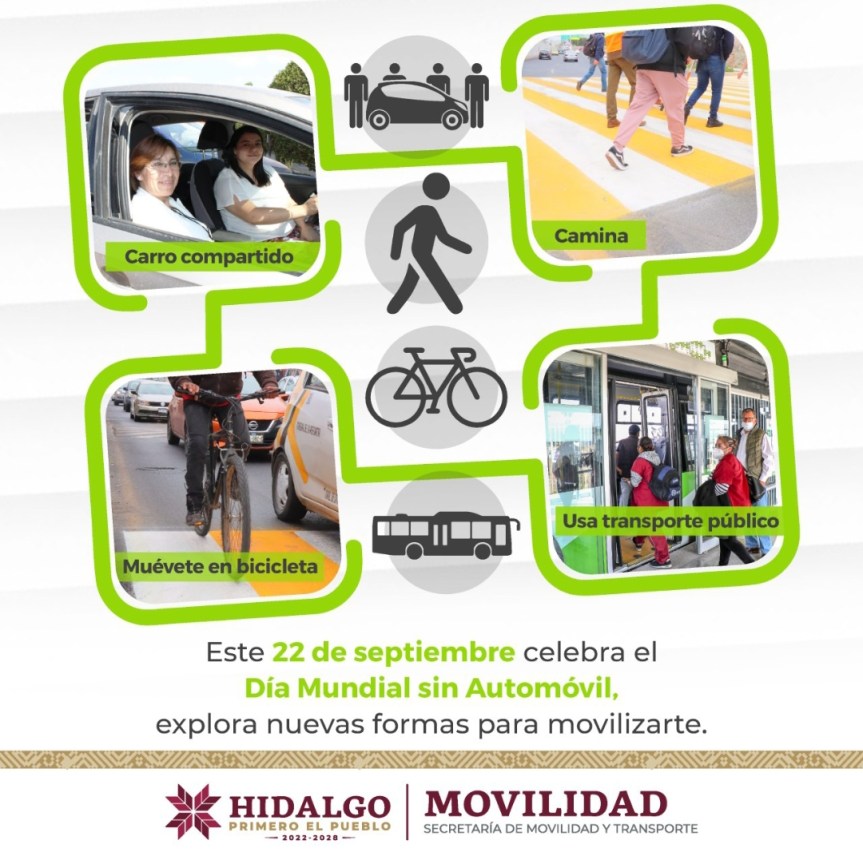 GOBIERNO DE HIDALGO INVITA A UNIRSE AL DÍA MUNDIAL SIN AUTOMÓVIL