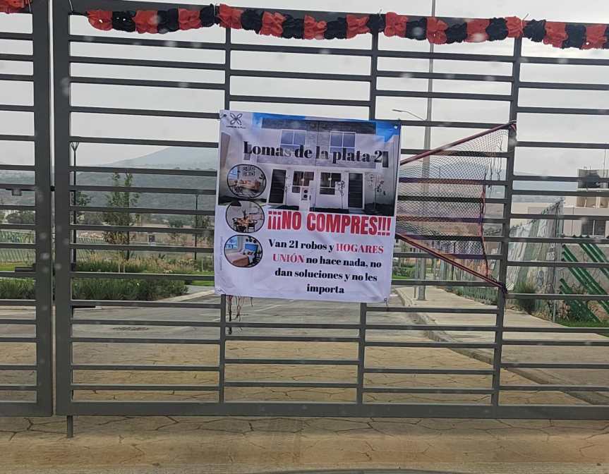 Pachuca, Hgo. Vecinos del fraccionamiento Real de la Plata 2, denuncian que durante los últimos meses han sido víctimas de 21 robos en sus casas, demandan a la inmobiliaria Hogares Unión, haga algo al respecto pero no han recibido respuesta y los saqueos continúan.