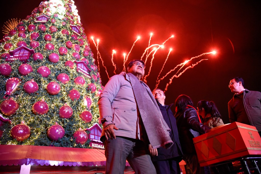 Tras el encendido, y en compañía de miles de personas, el gobernador, su esposa, la presidenta del Patronato del Sistema DIF Hidalgo, Edda Vite Ramos, el secretario de Gobierno, Guillermo Olivares Reyna y el titular de la Oficialía Mayor, Orlando Ángeles Pérez, presenciaron el show piromusical que fue preparado para la ocasión.