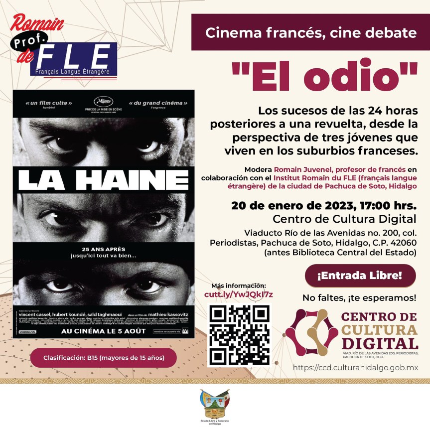 La actividad de cine debate será conducida por Romain Juvenel, quien es profesor del Institut Romain du FLE (français langue étrangère) en Pachuca de Soto y busca un intercambio cultural México – Francia para compartir experiencias significativas, situaciones sociales de su país, cómo es el modo de vida francés y qué retos han enfrentado.