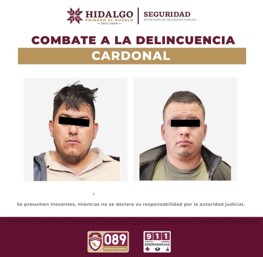 Tras desplegarse un operativo inmediato, elementos de la SSPH interceptaron un vehículo tipo Gol color blanco, sin placas de circulación, cuyos ocupantes pretendían fugarse a toda velocidad, sin embargo, fueron alcanzados en un camino de terracería a la altura de la comunidad Capula-San Andrés Daboxtha, en el municipio de Cardonal.