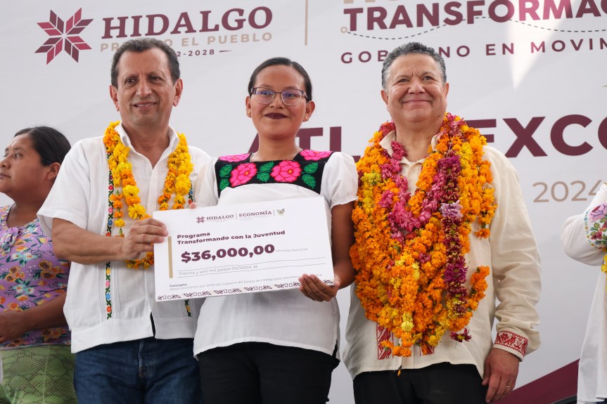 Por otra parte, y para contribuir a la generación de mejores condiciones de desarrollo, el gobernador atestiguó la entrega simbólica de los programas “Impulso NAFIN + Hidalgo” y “Transformando con la Juventud”, que en suma alcanzan un millón 344 mil pesos.