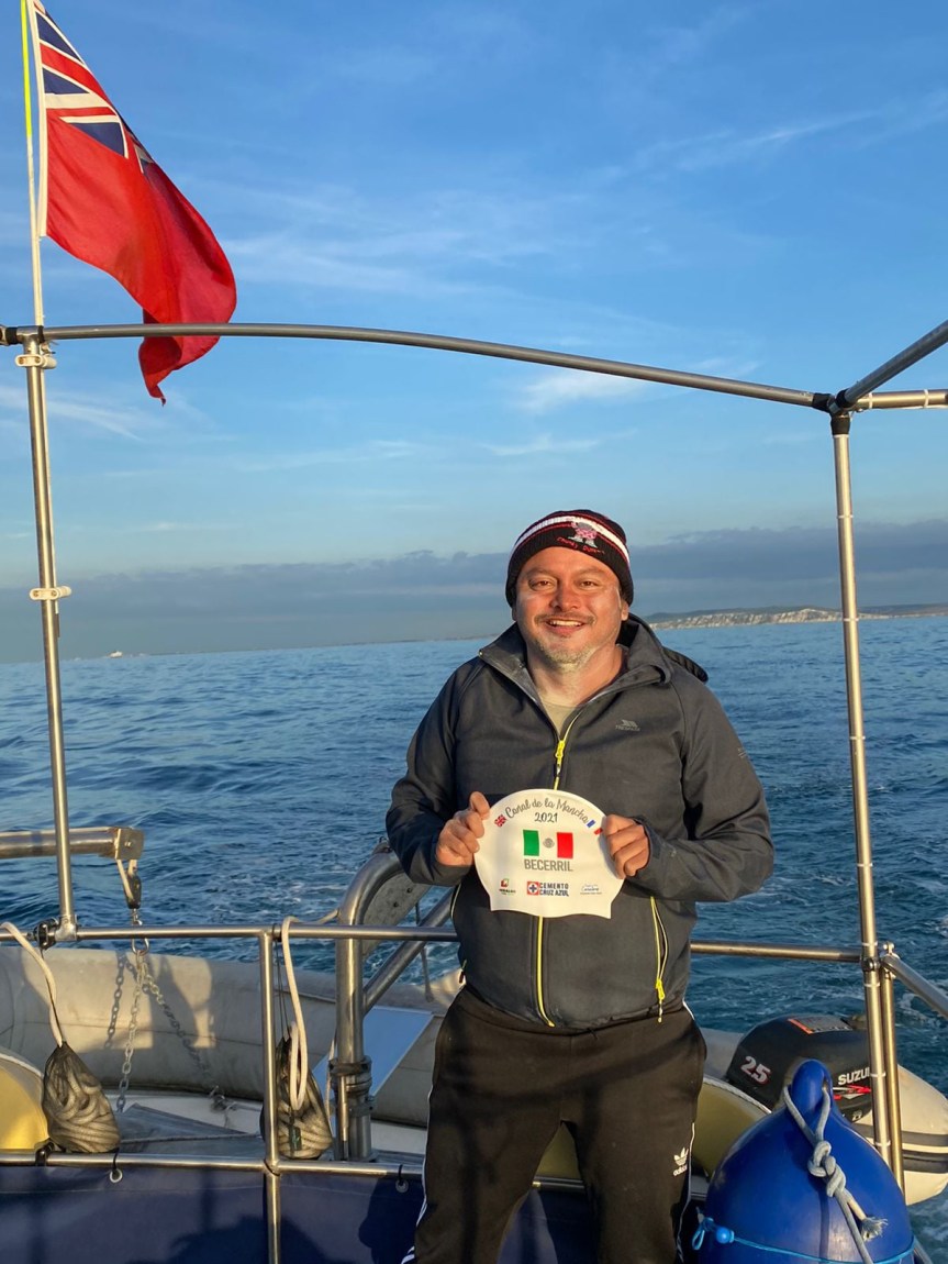 ● El hidalguense cruzó en 2022 el Canal de Catalina en el mes de julio, con un tiempo oficial de 13 horas con 52 minutos, recorriendo una distancia de 32.3 kilómetros desde la playa de la Isla de Catalina en el Océano Pacifico a la costa de California.