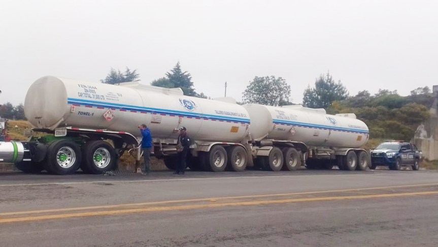 Mediante patrullajes de prevención y vigilancia en el barrio El Canal, municipio Acaxochitlán, fueron ubicados dos autotanques abandonados, con capacidad de 31 mil 500 litros cada uno, los cuales se encontraban abastecidos a 80 por ciento con hidrocarburo.