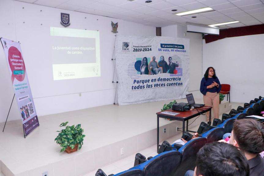 En el marco del Plan de Trabajo Conjunto para la Promoción de la Participación Ciudadana en el Proceso Electoral Concurrente 2023-2024, el Instituto Estatal Electoral de Hidalgo (IEEH) impartió el Foro: “La Juventud como dispositivo de cambio” con estudiantes de la Universidad Politécnica de Pachuca.