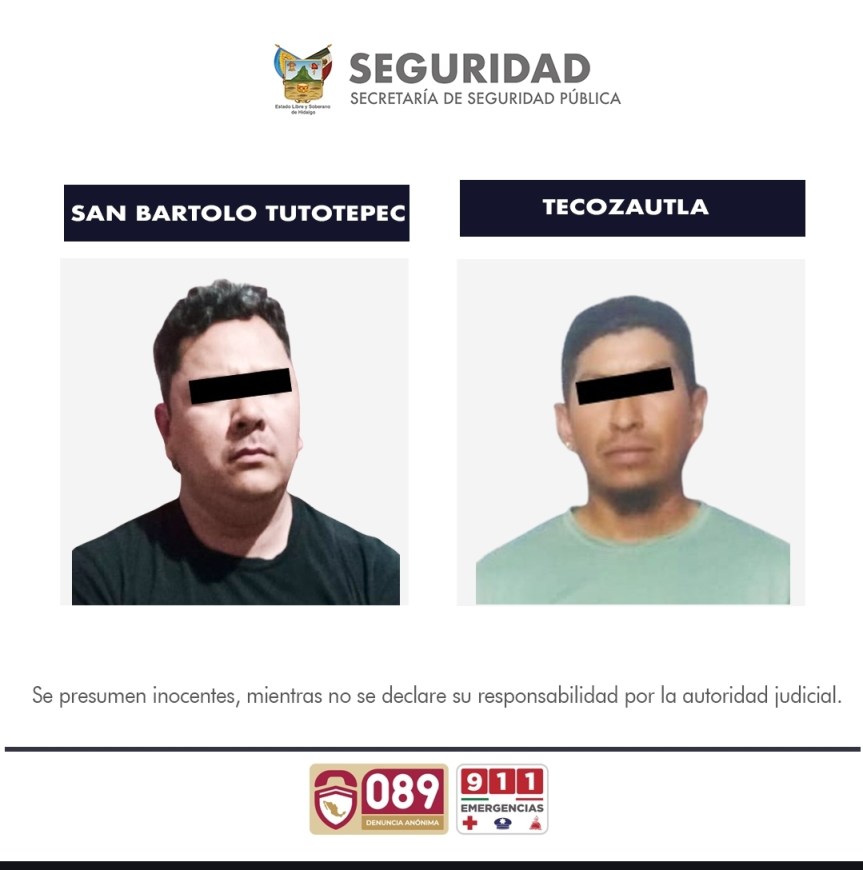En seguimiento a labores preventivas, la Secretaría de Seguridad Pública de Hidalgo (SSPH) realizó la detención de dos personas por la portación ilegal de armas en los municipios de San Bartolo Tutotepec y Tecozautla.