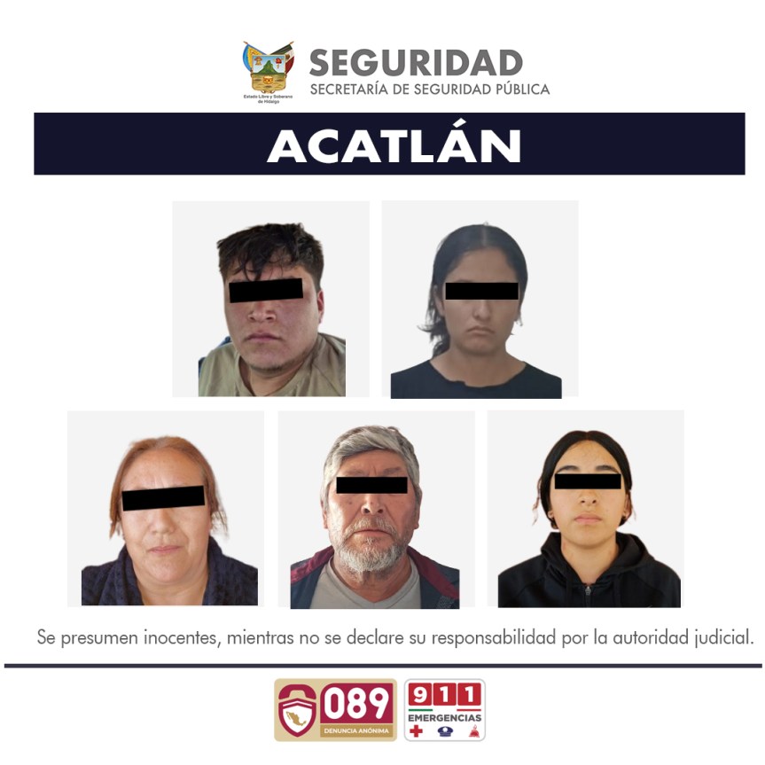 Mediante trabajos de inteligencia operativa, la Secretaría de Seguridad Pública de Hidalgo (SSPH), llevó a cabo la detención de cinco personas durante un operativo en el municipio de Acatlán.