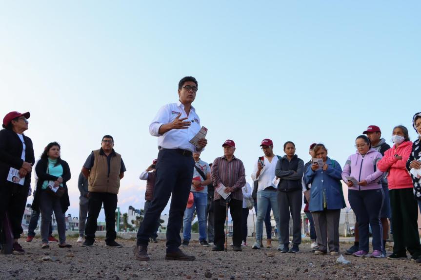 El candidato común a presidente municipal por la alianza “Juntos Seguiremos Haciendo Historia”, Eduardo Medécigo Rubio, recorrió la colonia Pedregal de los Ángeles en compañía de su esposa Samantha Esparza y equipo de campaña.