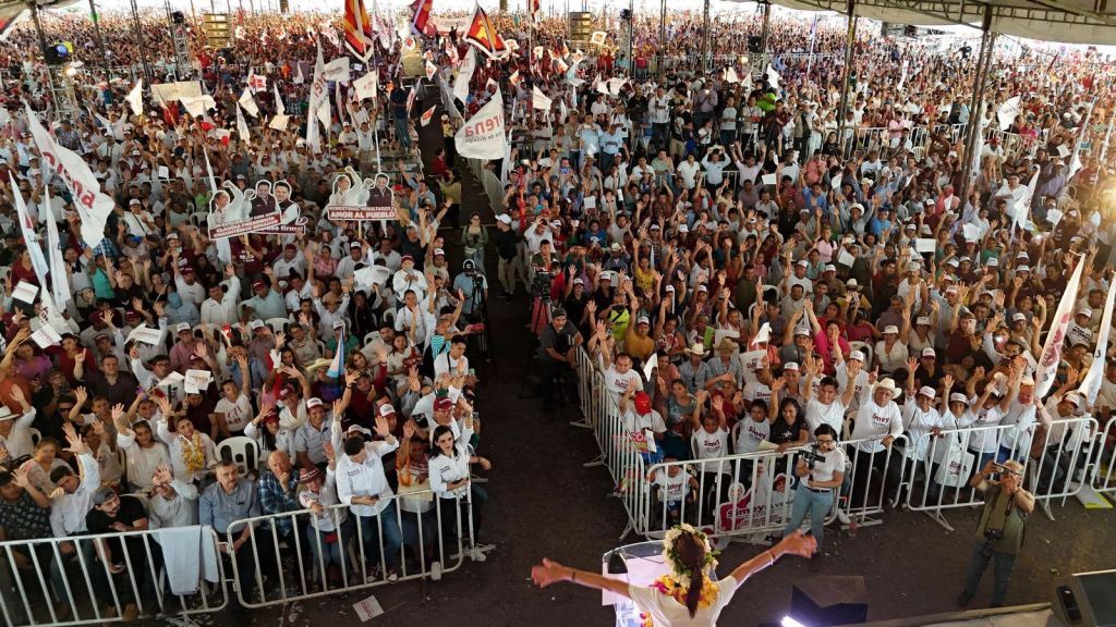 Esta tarde, la candidata a la presidencia de México por la coalición Sigamos Haciendo Historia encabezó un mitin en los terrenos de la feria del municipio de Huejutla ante más de 10 mil asistentes.