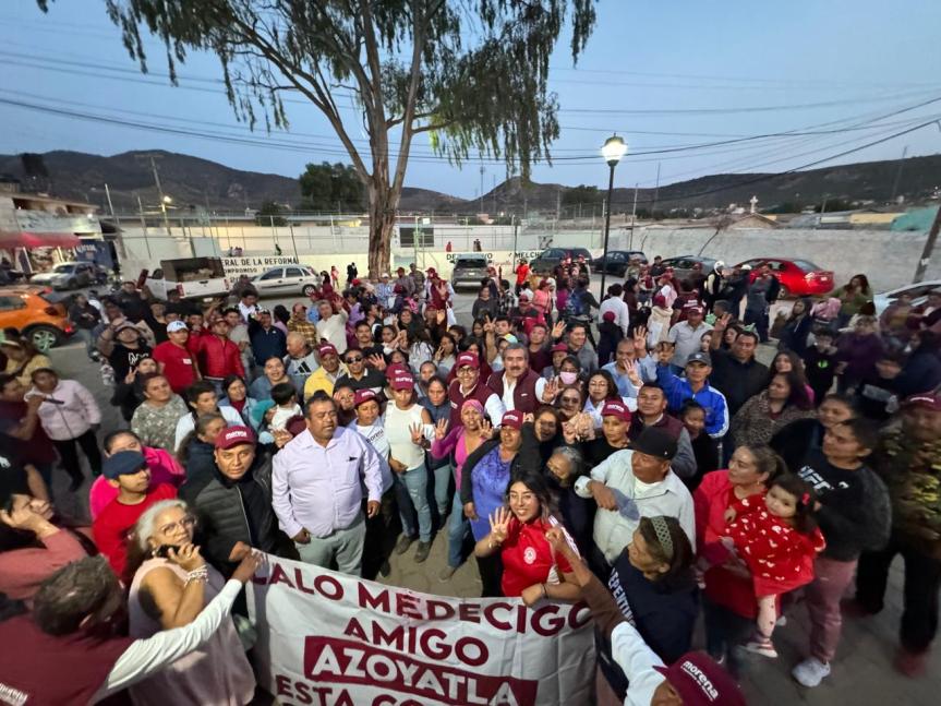 Lalo Medécigo, candidato común de Morena y Nueva Alianza Hidalgo a presidente municipal de Mineral de la Reforma, visitó la colonia Azoyatla en compañía de vecinos quienes les externaron sus principales demandas y, al mismo tiempo, lo felicitaron por generar un vínculo directo con cada uno de los asistentes.