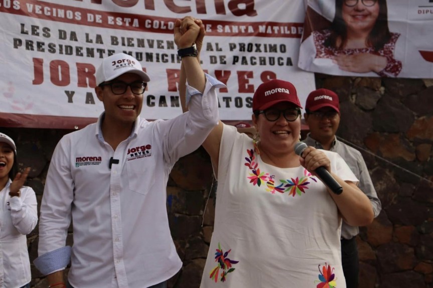 En compañía del candidato de Morena y Nueva Alianza para la presidencia municipal de Pachuca, Jorge Reyes, la candidata aseveró que la Cuarta Transformación brinda la oportunidad de que la gente de a pie, que conoce las necesidades de la población, ocupe espacios en la política.