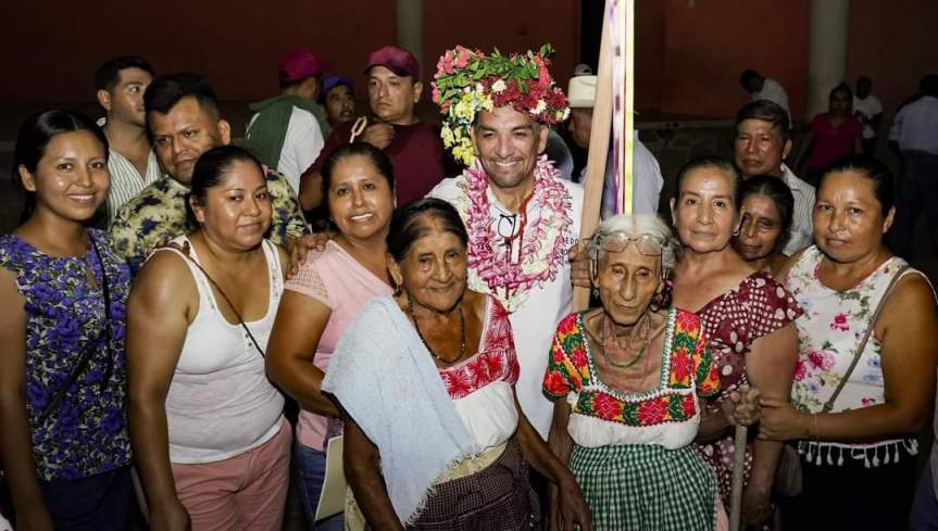 Por segunda ocasión, Alfredo San Román Duval, candidato común de Morena y Nueva Alianza Hidalgo a la presidencia municipal de Huejutla, recibió el bastón de mando por los vecinos de la localidad de Santa Cruz.