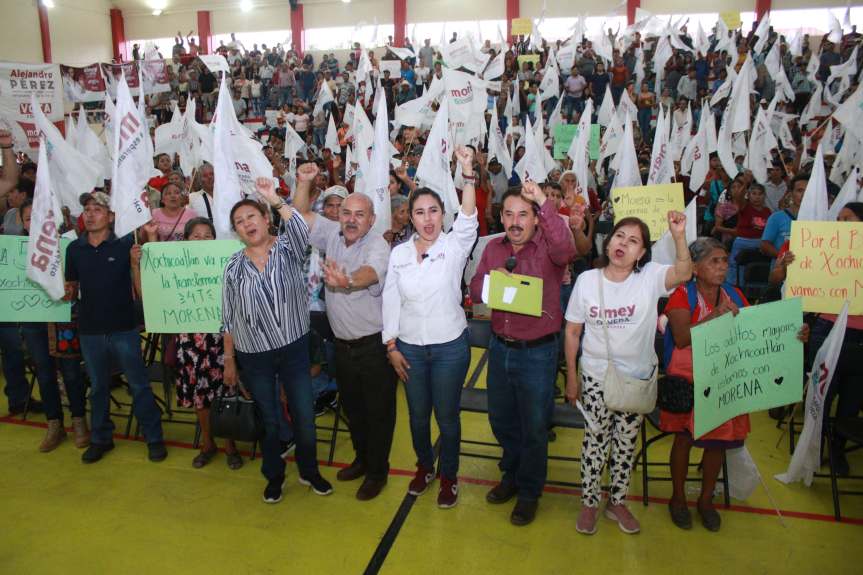 «Hoy el movimiento de la Cuarta Transformación ha demostrado estar con la gente a través de los programas sociales, que en promedio benefician a ocho de cada 10 familias. Por eso venimos con gusto y frente en alto a pedirles su confianza», externó Simey Olvera en su participación en Juárez Hidalgo.