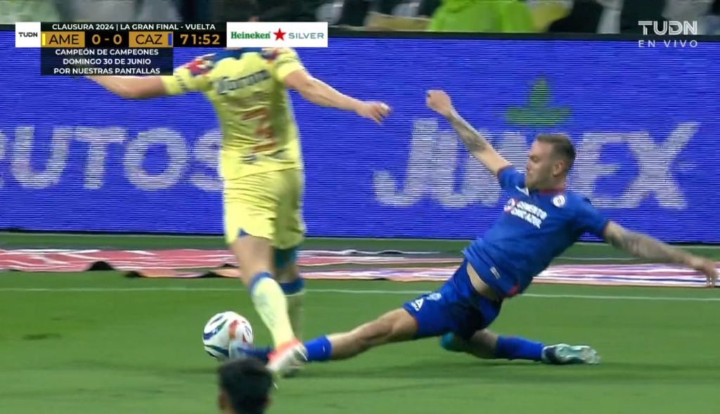 La segunda jugada fue protagonizada por Jonathan Dos Santos, quien propinó un fuerte pisotón al defensa de los Tuzos, Pedro Pedraza, siendo evidente en la repetición cómo el jugador del América pisó al jugador de los Tuzos.