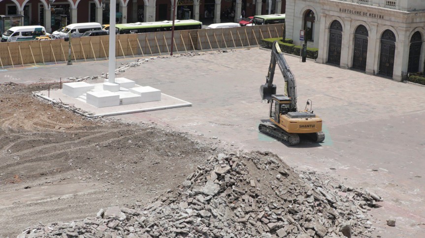 El Centro Estatal de Maquinaria de Desarrollo (CEMD), un organismo público descentralizado de la Secretaría de Infraestructura y Desarrollo Urbano Sostenible (SIPDUS), participa en las labores preparatorias que la Oficialía Mayor realiza en la Plaza Juárez. Lo anterior, a través de dos excavadoras para la remoción y carga del adoquín que cubre la superficie de la explanada, previo al inicio de los trabajos que contratará la SIPDUS para la ejecución del proyecto.