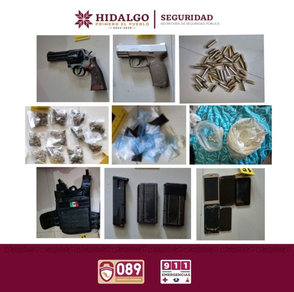 Estas acciones, ejecutadas en coordinación interinstitucional con la Procuraduría General de Justicia de Hidalgo (PGJEH), se llevaron a cabo en seguimiento a labores de investigación que derivaron en la localización de una vivienda señalada como punto de narcomenudeo.