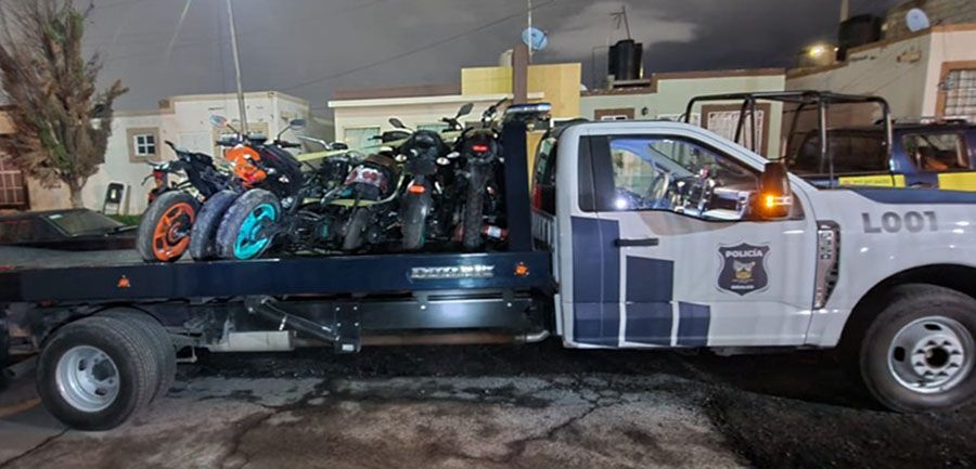 Derivado de los hechos y en seguimiento a labores de investigación, se cumplimentó una orden de cateo en la vivienda con número 522, donde fueron localizadas seis motocicletas, todas sin placas, así como una estructura de motocicleta, por lo que se presume eran desmanteladas en este punto.