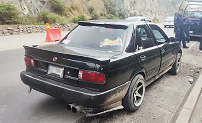 Al ser alertados, oficiales en campo realizaron la intervención del vehículo en Mineral del Monte, donde se detuvo al conductor y su acompañante, identificados como J.B. Q. y J.L.V.L., de 24 y 36 años de edad respectivamente.