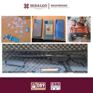Durante las diligencias, también se decomisaron un arma larga, un cargador para arma larga, un cargador para arma corta, cuatro cartuchos útiles .223, equipo de telefonía celular y una cuatrimoto sin placas de circulación, ni número de serie.