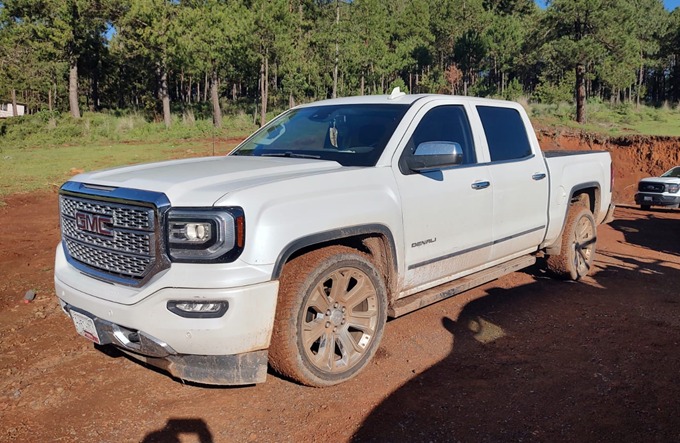Durante la operación se localizó una camioneta GMC, Sierra, color blanco, así como un subfusil tipo Uzi, una escopeta, un fusil semiautomático AR-15, un cargador de subfusil tipo Uzi y un cargador de fusil semiautomático.