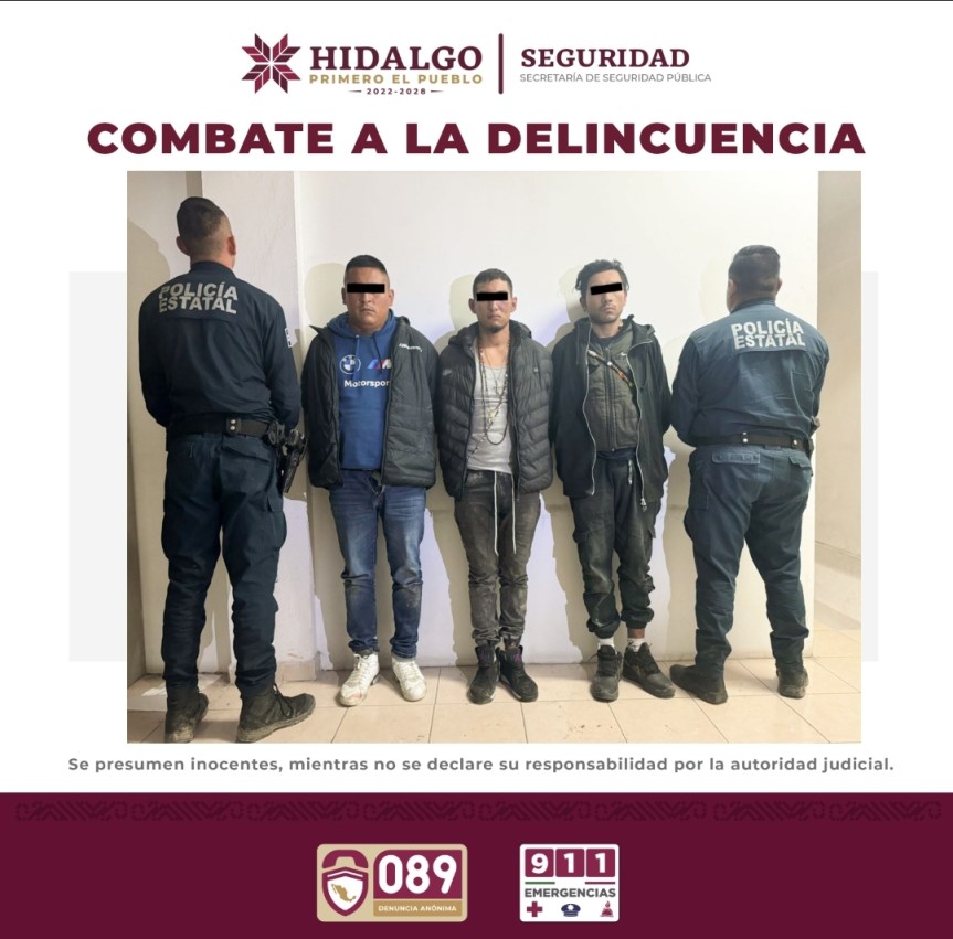 En seguimiento a labores de investigación y coordinación operativa, la Secretaría de Seguridad Pública de Hidalgo (SSPH) logró la captura de tres personas, quienes están presuntamente relacionadas con diferentes robos ocurridos en la autopista México – Pachuca.