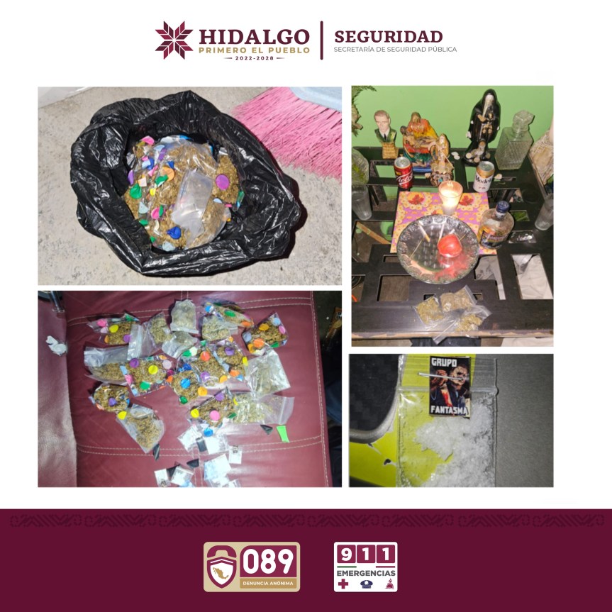 Durante la ejecución de un operativo, elementos adscritos a la Secretaría de Seguridad Pública de Hidalgo (SSPH) detuvieron a una persona presuntamente relacionada con actividades de narcomenudeo, y llevaron a cabo el decomiso de diferentes sustancias ilícitas.