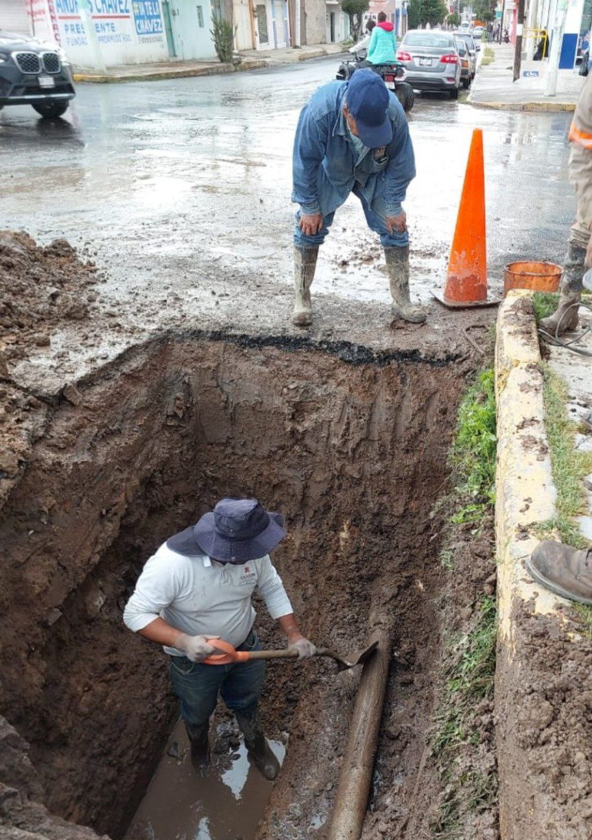 Asimismo, se llevó a cabo la reparación de una fuga no visible en la calle 20 de noviembre, además de brindar mantenimiento en cajas de válvulas y limpieza en tubería.