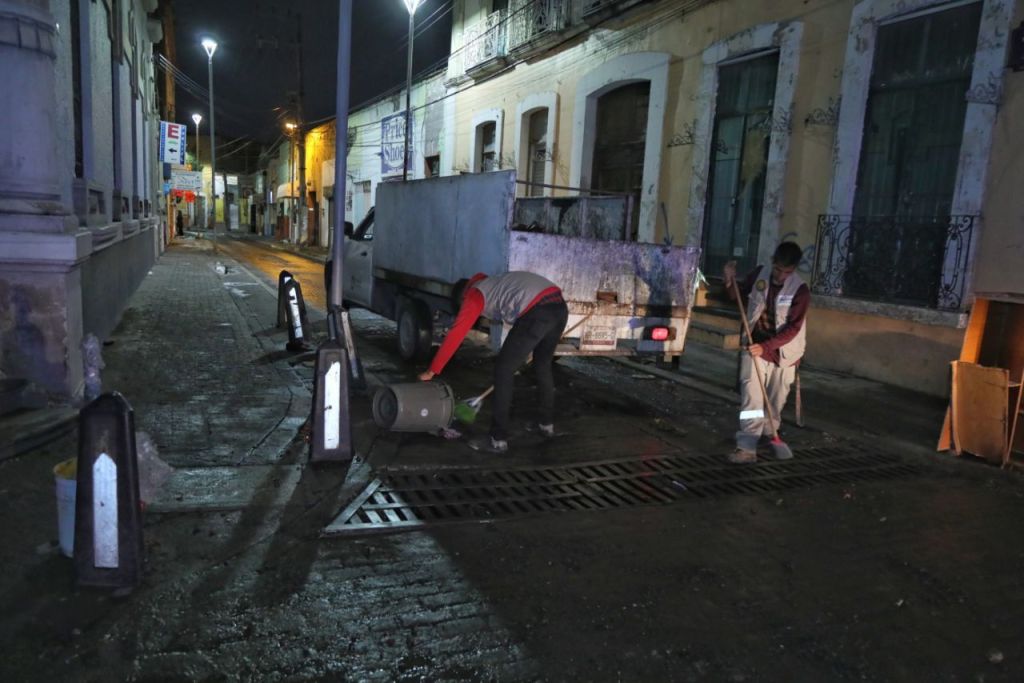 Entre los trabajos realizados se retiró material que arrastró la corriente de agua, mismo que se acumuló en las calles de Ocampo e Hidalgo.
