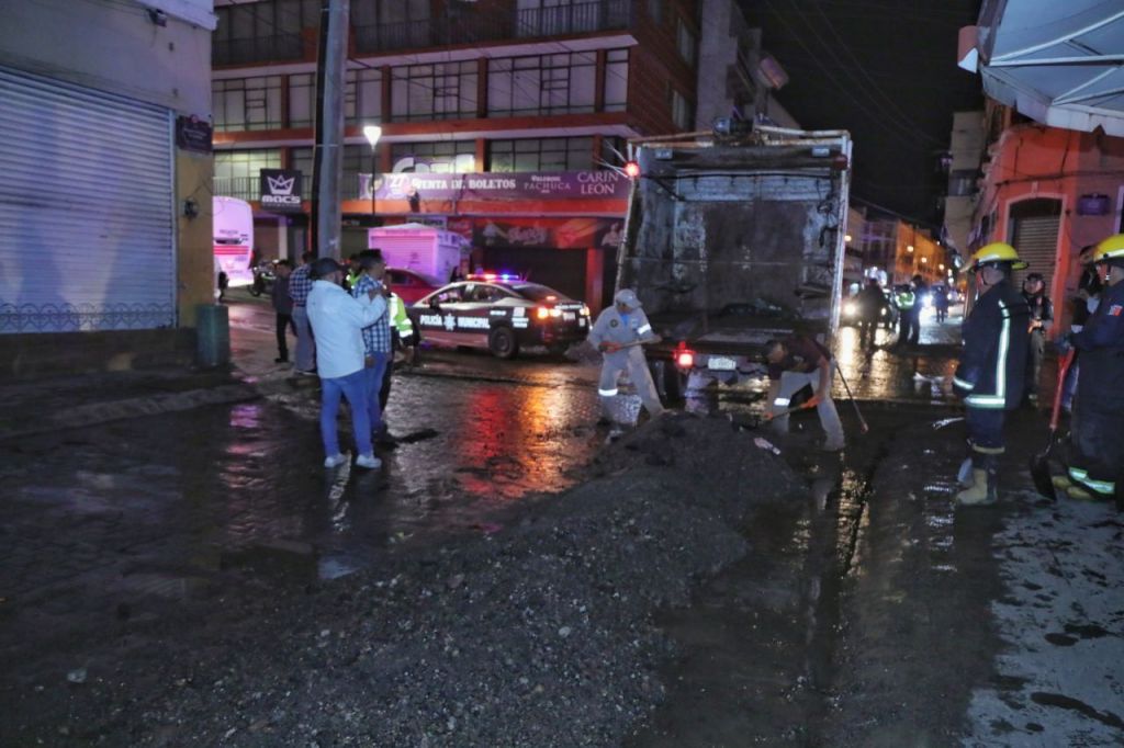 Además de las acciones realizadas en el Centro de Pachuca, personal de Protección Civil del municipio acudió a la Antigua Carretera al Real, pasando la curva de San Nicolás con dirección a Mineral del Monte, para retirar material por un deslave en el lugar derivado a las lluvias acontecidas.