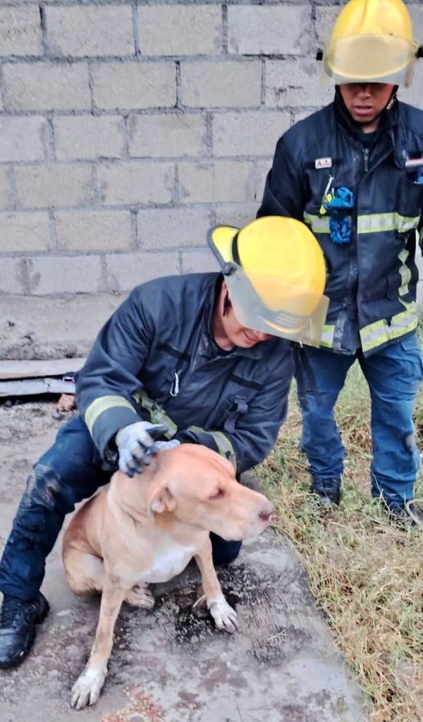 Los bomberos estatales descendieron y realizaron el rescate del perro; se encontraba visiblemente asustado, mojado y no presentó lesiones.