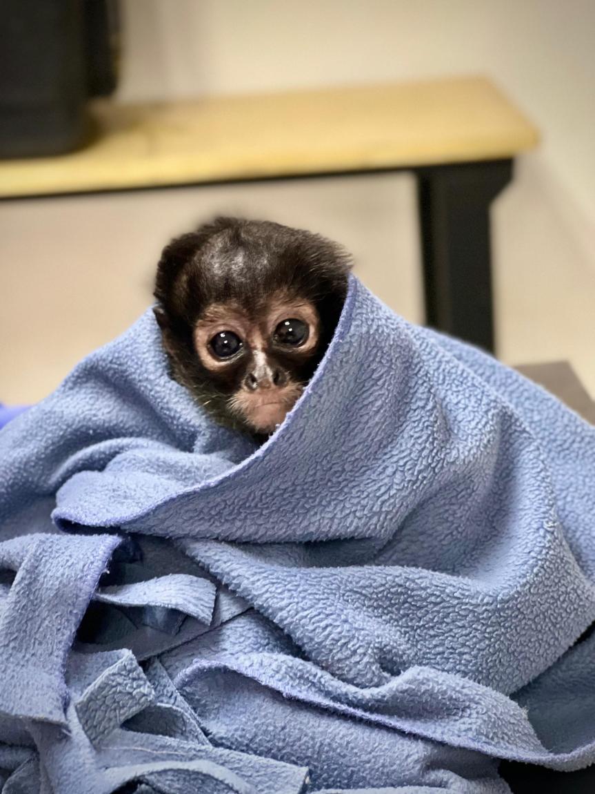 El mono araña es una especie de fauna que se encuentra en peligro de extinción, por eso se dio parte a la Procuraduría Federal de Protección al Medio Ambiente (PROFEPA) quien determinará el destino final de la bebé de aproximadamente 3 meses de edad.