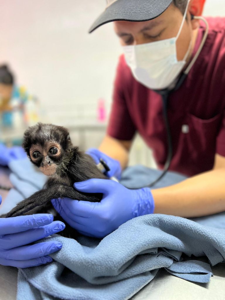 Una bebé mono araña fue entregada de forma voluntaria a la Unidad de Rehabilitación de Fauna Silvestre de Pachuca, en donde fue revisada con mucho cuidado por médicos veterinarios para verificar su estado de salud.