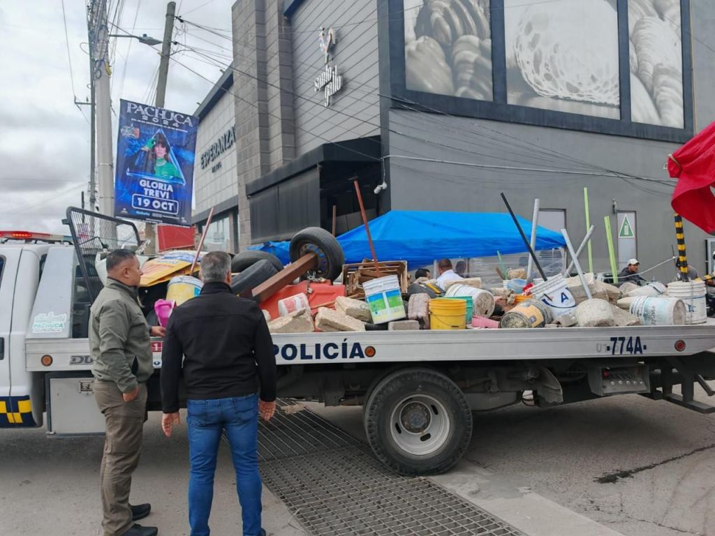 Encabezados por el secretario de Seguridad, Juan Manuel Ayala Guarro, los policías municipales quitaron 300 objetos que obstruían la vía pública, mismos que no tenían permiso o autorización para ese uso.