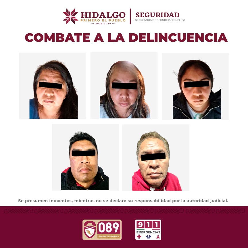 Agentes de la Secretaría de Seguridad Pública de Hidalgo (SSPH) detuvieron a tres mujeres y dos hombres durante un operativo simultáneo efectuado en dos domicilios del municipio de Zempoala, como parte de las acciones del organismo para combatir de manera frontal la delincuencia.