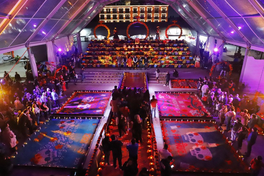 Con la finalidad de recordar a los seres queridos que ya fallecieron, la presidencia municipal de Pachuca instaló un gran altar de Día de Muertos en la Plaza Independencia.