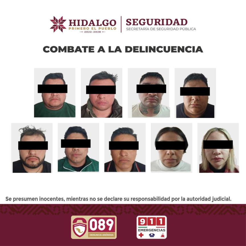 Derivado de trabajos de inteligencia operativa, la Secretaría de Seguridad Pública de Hidalgo (SSPH) llevó a cabo el aseguramiento de nueve personas, quienes eran miembros de una banda delictiva dedicada al robo de automotores y la alteración de los medios de identificación vehicular, para posteriormente venderlos.
